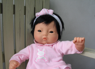 | black fixed eyes and vinyl legs, tall. She has a soft bean bag body, black fixed eyes and vinyl legs, arms and face. Soft and light, arms and face. Soft and light, |
