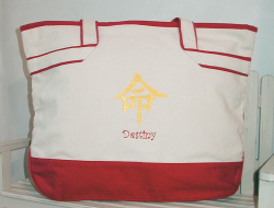 | You can show off your style and keep organized with one of our beautifully embroidered carry-all bags. The Destiny design is available in a variety of embroidery color schemes. To see available thread colors, click drop-down menu below. Click to view details of new style bag or scroll down to read details below. The Destiny design is available on other items as well. Be sure to take a look at our selection of sweatshirts and aprons. |