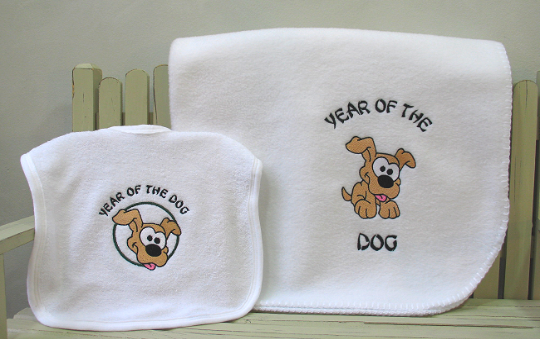 | Sweatshirts, bibs and bags are embroidered with the smaller design. The larger design is embroidered on blankets. |
