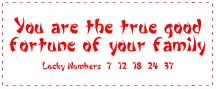 | Our soft cotton onesies have contrast stitching and feature the fortunes: "You are the true good fortune of your family" or "A nap is in my near future" |