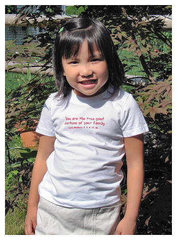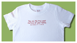| For toddlers and juniors, we offer a white t-shirt with: "You are the true good fortune of your family" |