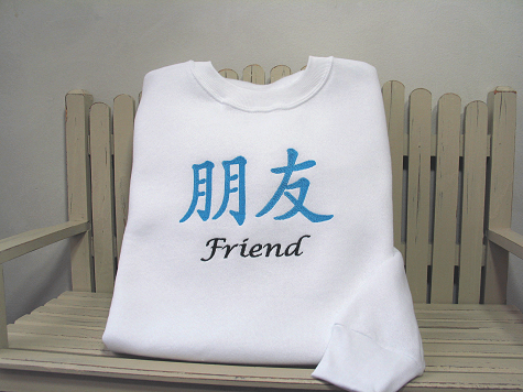 beautiful Chinese character sweatshirts.