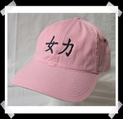 Caps have Chinese characters on the front and English translation on the back.