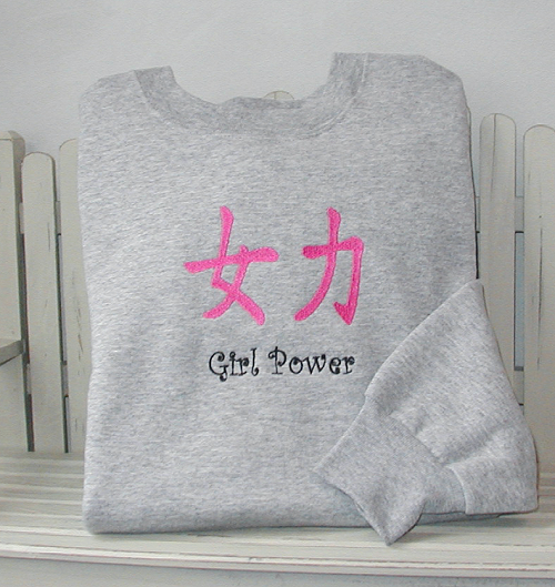 beautiful Chinese character sweatshirts.