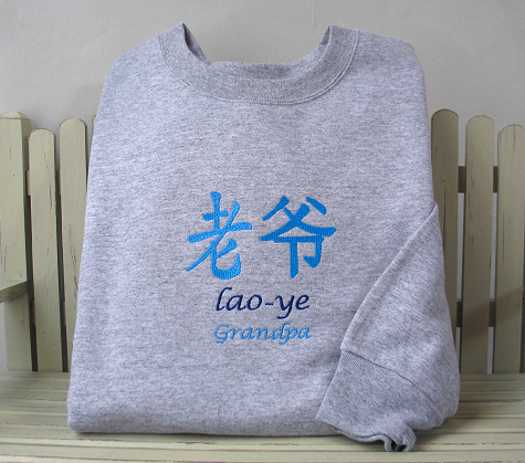 beautiful Chinese character sweatshirts.