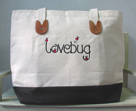 | Surprise your loved one with a truly unique diaper bag! Our beautifully embroidered carry-all bags help stylish moms to keep organized. The Lovebug design is embroidered with black letters and red, gray and black ladybugs. Click to view details of new style bag or scroll down to read details below. The Lovebug design is available on other items as well. Be sure to take a look at our selection of bibs, baby blankets, and sweatshirts. |
