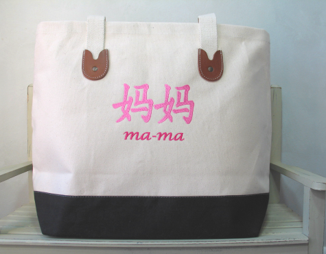 | You can show off your style and keep organized with one of our beautifully embroidered carry-all bags. The Mom design is available in a variety of embroidery color schemes. To see available thread colors, click drop-down menu below. Click to view details of new style bag or scroll down to read details below. The Mom design is available on other items as well. Be sure to take a look at our selection of sweatshirts and aprons. |