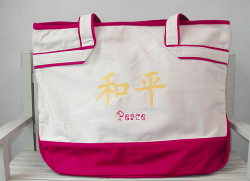 | You can show off your style and keep organized with one of our beautifully embroidered carry-all bags. The Peace design is available in a variety of embroidery color schemes. To see available thread colors, click drop-down menu below. Click to view details of new style bag or scroll down to read details below. The Peace design is available on other items as well. Be sure to take a look at our selection of sweatshirts and aprons. |