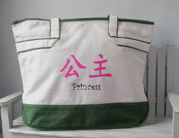 | This picture shows one of the embroidery color schemes available. This embroidery will be done on the new style bag (seen at top of page). |