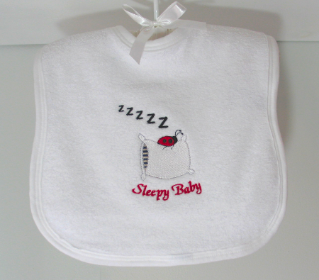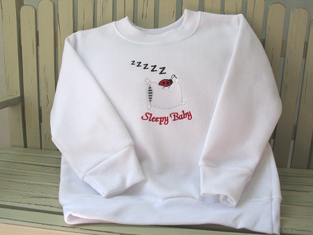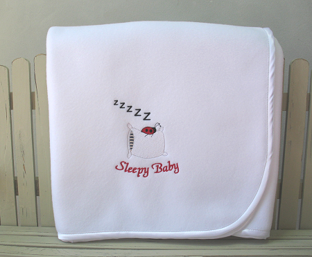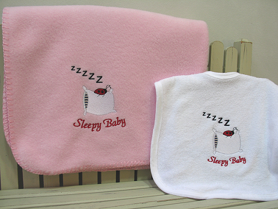 | Sweatshirts, bibs and bags are embroidered with the smaller design. The larger design is embroidered on blankets. |