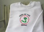 | Sweatshirts, bibs and bags are embroidered with the smaller design. The larger design is embroidered on blankets. |