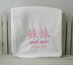 These pictures show the embroidery color scheme available. This embroidery will be done on the new style blanket.