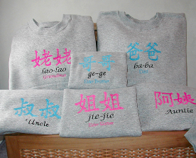 | Surprise your loved ones on the day they arrive home from China by greeting them at the airport wearing our sweatshirts and/or caps. |