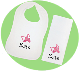 Bibs are white terry cloth with white edging, have a velcro closure and measure 10" by 9 3/4. $14 |