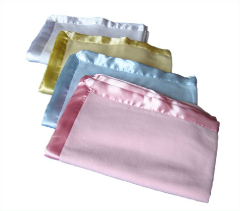 Our high quality fleece crib Blanket is generously sized at 36" x 50" and is trimmed with a matching satin edge. Blankets are available in white, pink, blue and yellow. $40 |